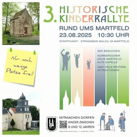 Treffpunkt ist um 10:30 Uhr - diesmal am Haus Martfeld bzw. an der Strandbar Malou im Martfeld. Mitmachen dürfen alle Kinder zwischen 6 und 12 Jahren. Neben zahlreichen historischen Stationen, erwarten die Kinder auch viele kniffelige Aufgaben und spannende Spiele. In zwei Teams werden „die kleinen Nachtwächter“ und „die Kaals und Krißjans“ gegeneinander antreten. Die Wegstrecke ist hierbei zum Vorjahr verändert.